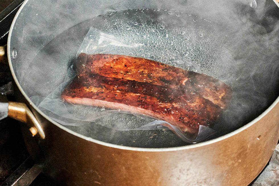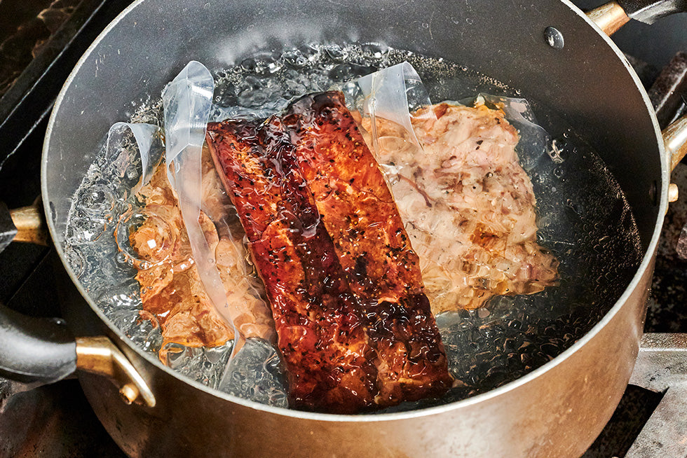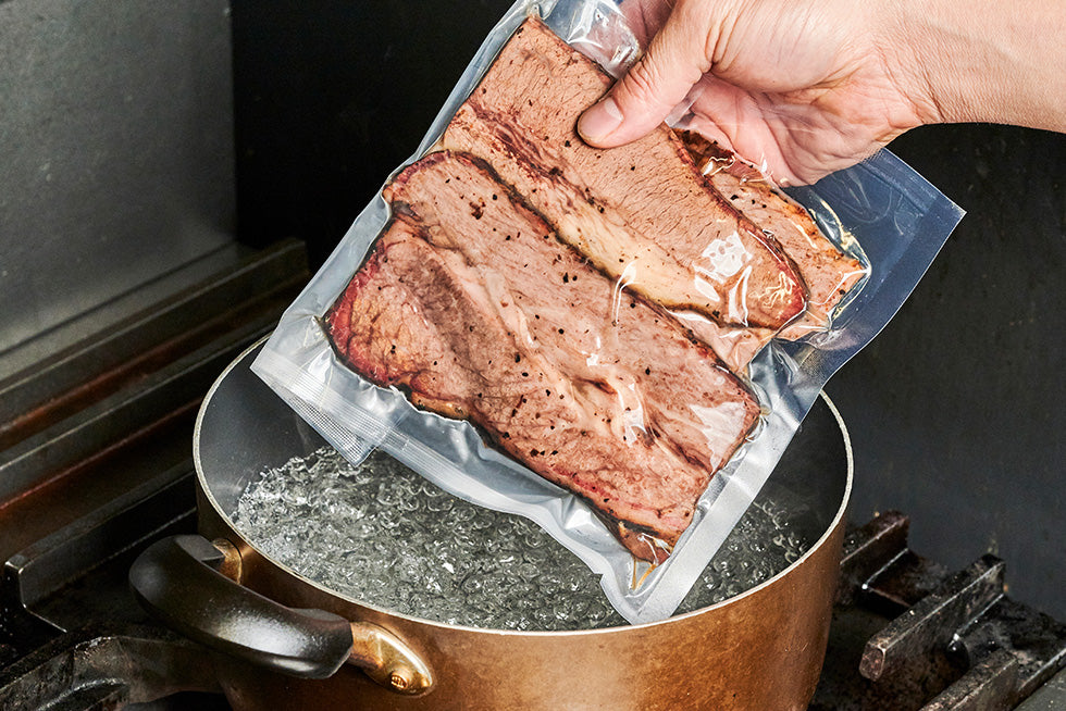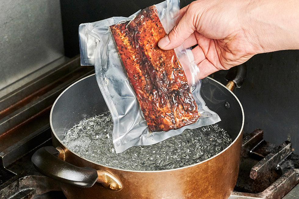 Place the sealed vacuum-packed bag into the pot.