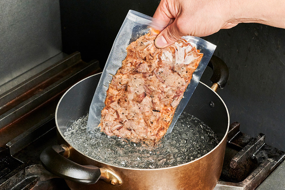 Bring water to a boil, then reduce to medium heat. Place the vacuum-sealed pack in the water (unopened) and heat for about 10 - 15 minutes.